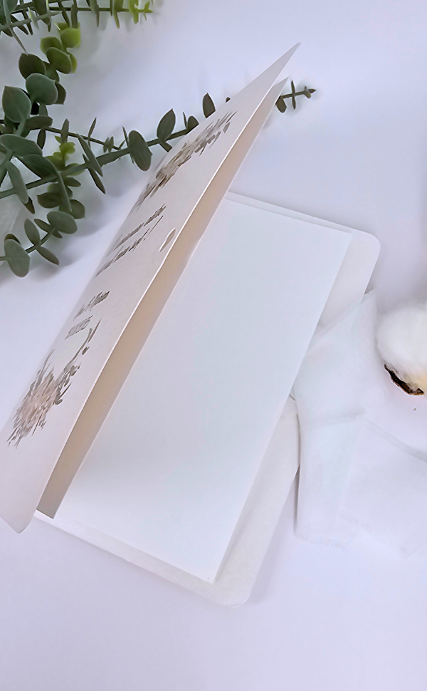 Felicitarea este realizată din carton premium de 300 g, cu finisaj sidefat, având la interior două coli de hârtie, panglică pentru închidere și un design personalizabil, ales în funcție de tematica evenimentului tău.